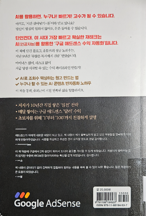 구글 애드센스로 돈 벌기 (AI 자동화 유튜브 쇼츠 추가 최신 확장판) + 쁘띠수첩 증정 - 중년/퇴직/