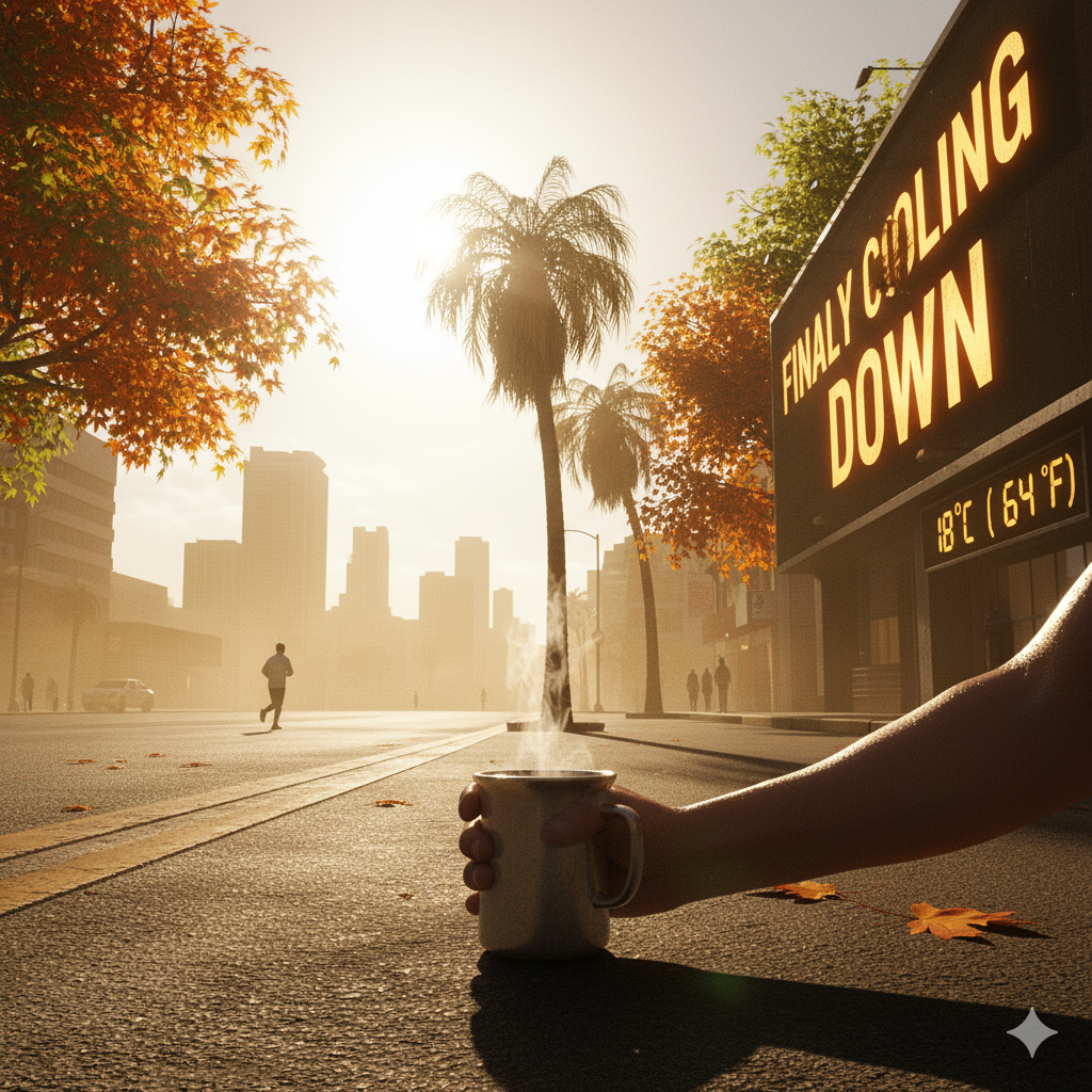 A: "Yeah, the scorching heat gave way to this crisp autumn air. I love it."