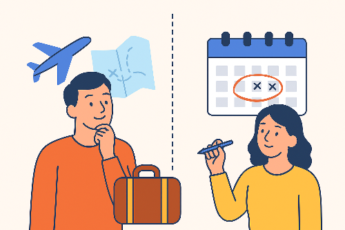 👉 출장, 여행, 휴가 등 일정 안내에 자연스럽게 쓸 수 있는 표현.