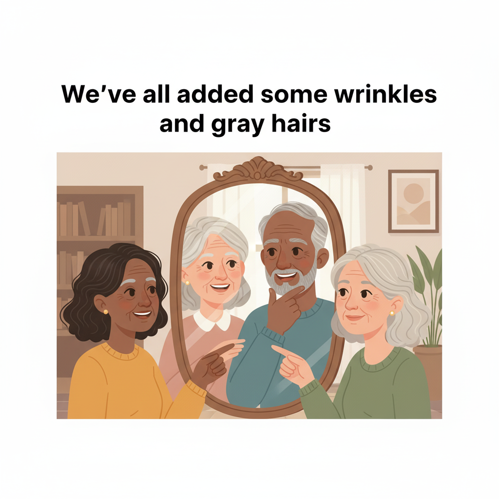 - 우리 모두는 주름과 흰머리를 좀 얻었지 (나이를 먹었지).