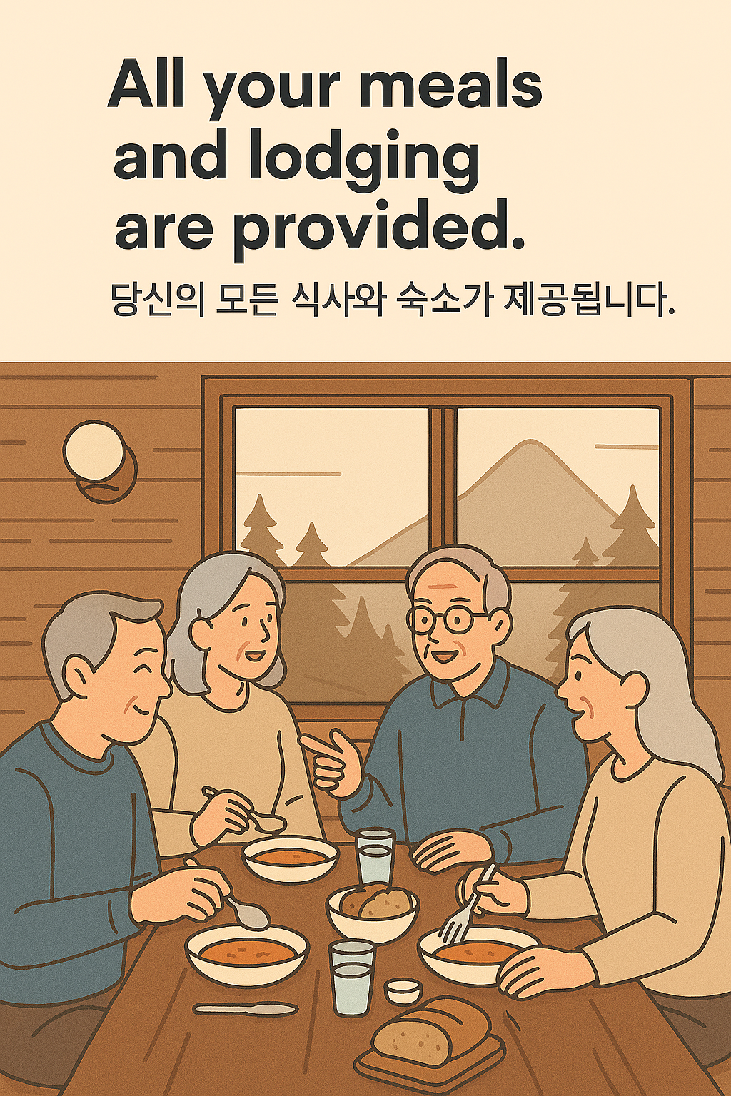 - All your meals and lodging: 당신의 모든 식사와 숙소