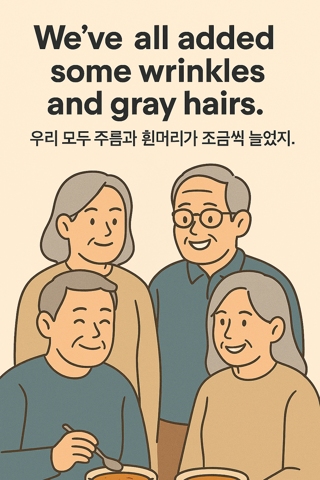 우리 모두 주름과 흰머리가 조금씩 늘었지.