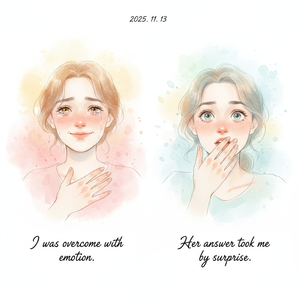 - 감정이 너무 커서 눈물이 날 때, 말이 안 나올 때 자주 쓰이는 자연스러운 표현.