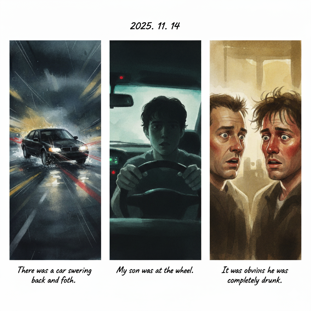 2️⃣ “내 아들이 운전대를 잡고 있었어.” 영어로?