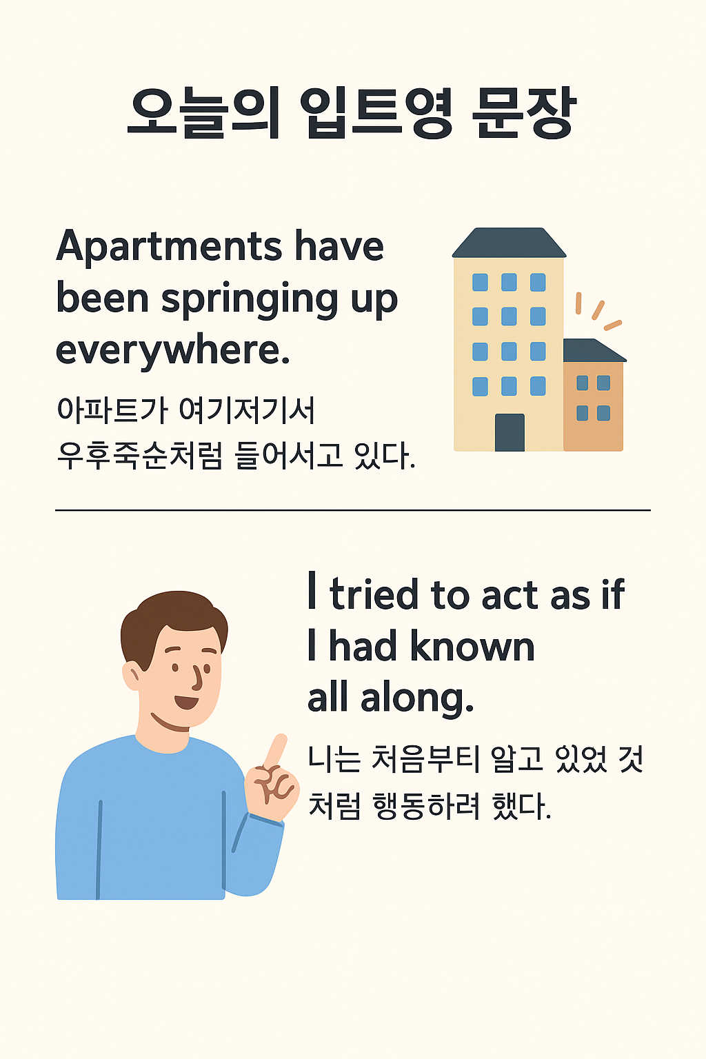 📝 타이밍과 갑작스러운 변화를 영어로 말하기 (Spring up, as if 가정법)