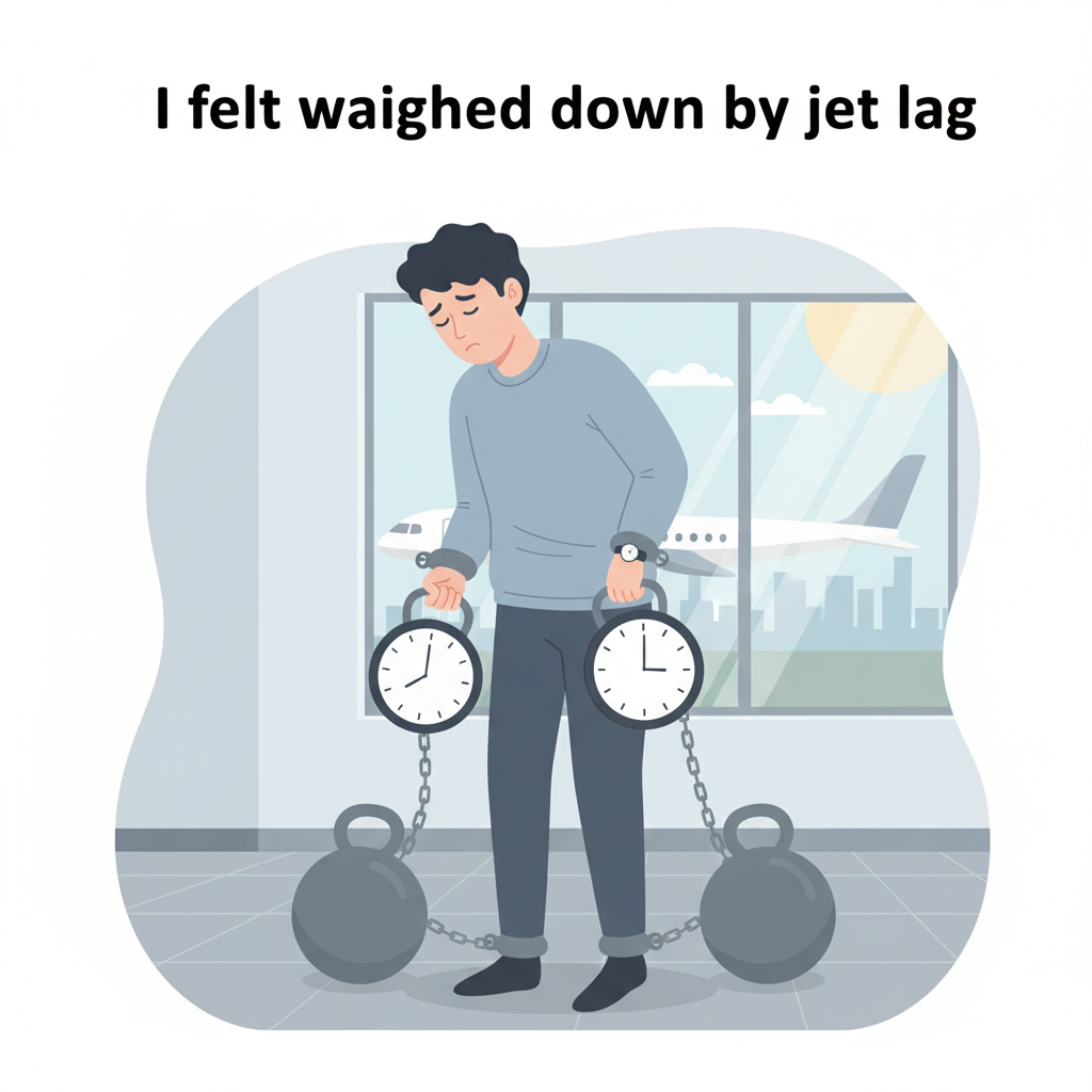 - I felt weighed down by jet lag for days. (며칠 동안 시차 때문에 무거웠어.)